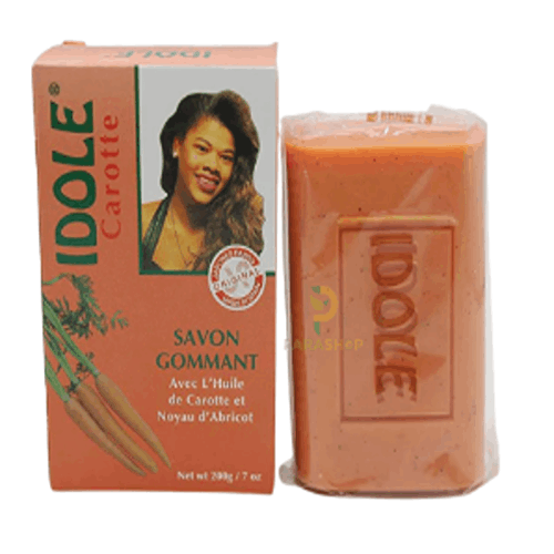 Savon gommant Idole carotte avec de la poudre de noyau d’abricot nettoie en profondeur et accélère l’élimination des cellules mortes. Il contient des huiles de carotte avec le B-carotène (provitamine A) afin de protéger votre peau aidant à garder lisse et jeune.